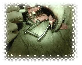 | Vorbehandlung jeweils in Kurznarkose mittels Ultraschall - so erhalten Sie Ihrem Tier ein gesundes Gebiss. Sollte es dennoch dazu kommen, dass ein Zahn durch fortgeschrittene Parodontose gelockert ist, muß er in Kurznarkose entfernt werden. Tiere haben da gegenüber uns Menschen einen Vorteil: sie bekommen vom Zahnziehen nichts mit. Bei Unfällen oder beim Beißen auf harte Gegenstände brechen Zähne gelegentlich ab. Soll der Zahn erhalten werden, ist es von großer Wichtigkeit, dass die nunmehr offene Wurzelhöhle durch eine Wurzelbehandlung wieder verschlossen wird. Der Zahn muss nicht gezogen werden und kann weiter zur Nahrungsaufnahme und -zerkleinerung verwendet werden. Unsere moderne Zahnstation mit Turbinenbohrer, Ultraschallzahnsteinentfernungsgerät und vielen anderen modernen Geräten garantiert die kompetente Versorgung Ihres Tieres. |